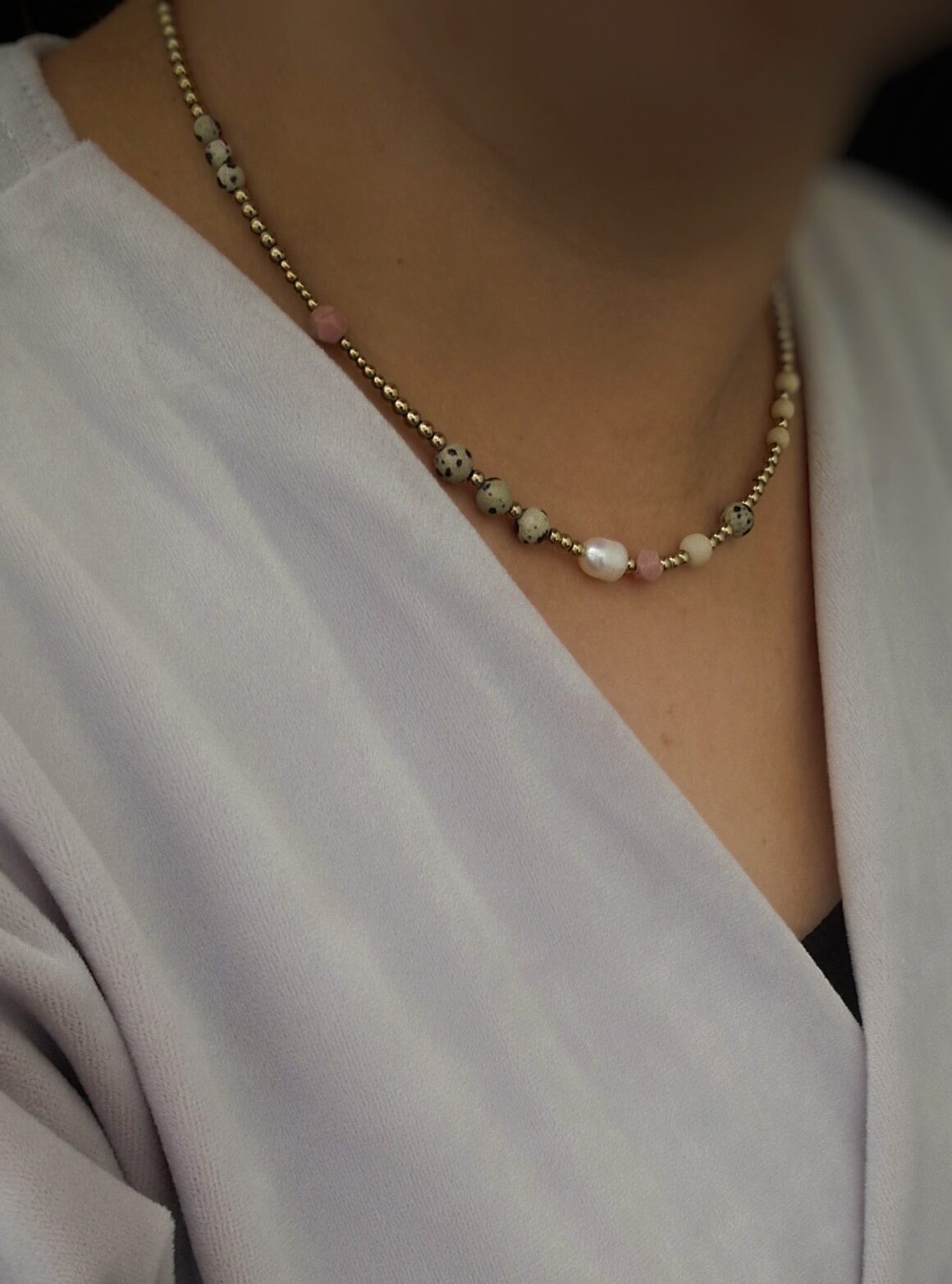 Zanurz się w energii, która otacza spokojem, koi i otula miłością. Ten Naszyjnik z kamieni Rodonit z perłą to piękno, siła, miłość i spokój, a przede wszystkim opowieść o Tobie- ważnej, silnej i zasługującej na wszystko co najlepsze. Bo jesteś tego warta.