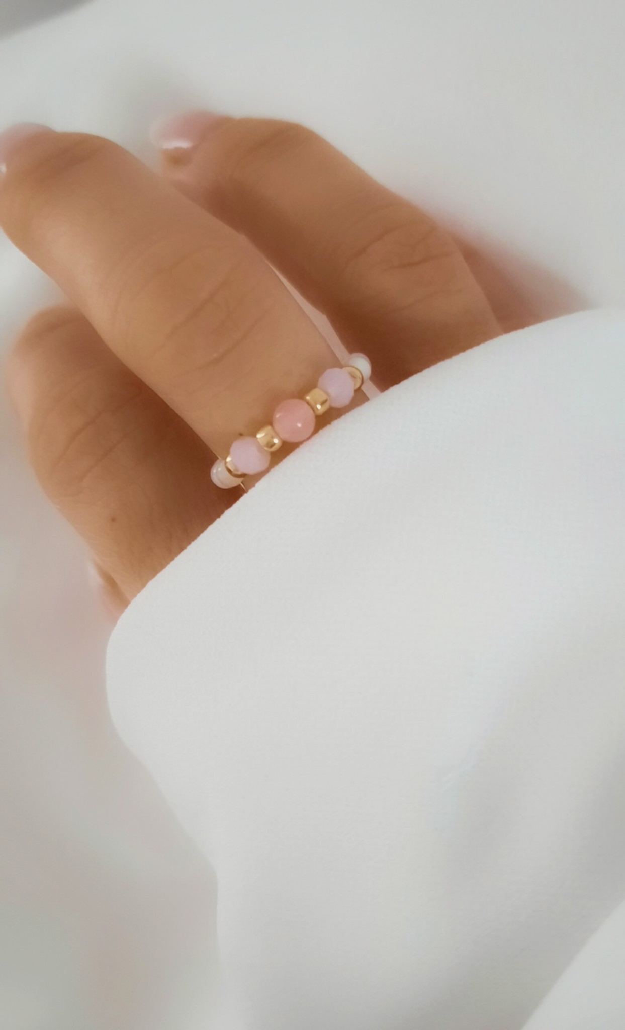 Delikatny i subtelny, pastelowy pierścionek elastyczny Jadeit Pink z agatu z różowym jadeitem  to świetny dodatek do każdej stylizacji. Modny, wygodny, idealnie się dopasowuje. Doskonale wygląda zarówno osobno jak i w zestawie.